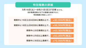 (8) キャンペーンへのエントリーがない状態で結果的に条件稼働を達成した場合は、手当の対象とはなりませんのでご注意ください。
